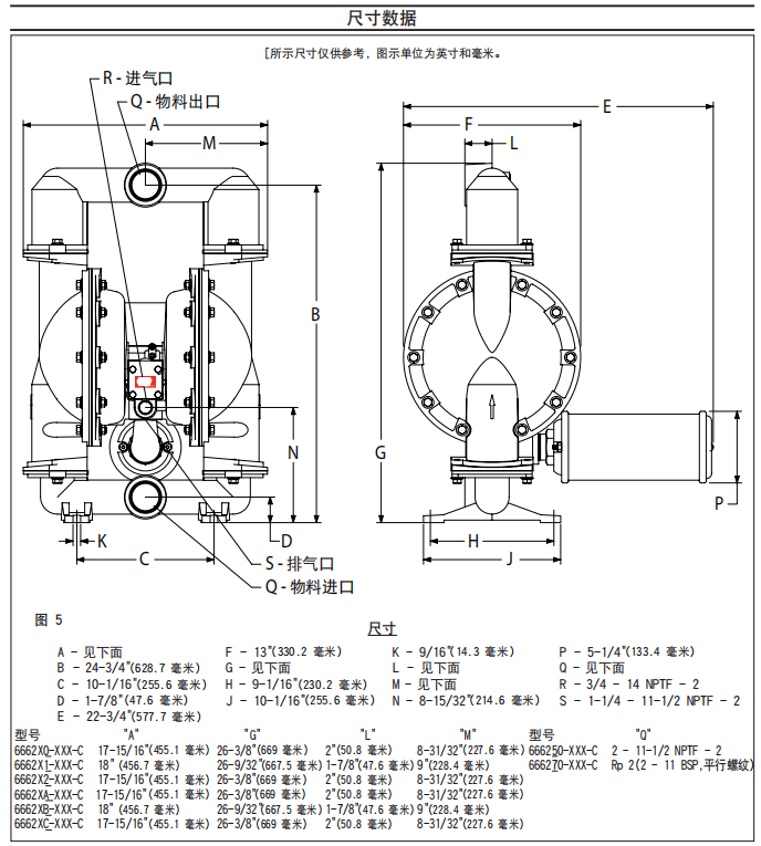66627B-244 66627B-344英格索兰款不锈钢气动隔膜泵是一种新型的输送机械,并通过中国机械工业排灌机械产品质量检测认可。已达到国外技术先进水平,是目前国内行业中新型的一种泵类,采用压缩空气为动力源,具有优良的压力一一流量自动调节特性,在工作压力范围内可任意设定压力,即使输出口堵塞流量为零也不会损坏泵,广泛用于各种流体的输送和作为加压过滤机的进料泵。气、液部分积木式设计,各部件具有多种不同材料,可供选用组合以适合输送不同的流体,可用来输送各种高含量和含有强磨损型颗粒的物料,无堵塞通过的颗粒直径大,更是用于输送各种强酸.强碱等强腐蚀介质,均能予以抽光吸尽。采用压缩空气作驱动的动力,气液两相完全分离,采用静密封结构,无泄漏和润滑等问题。工作时无电火花产生,尤其适用于要求防爆的场合。气动马达采用抗阻塞、非平衡,先导阀专利技术设计,即使在较低的压缩空气压力下也具有很强的输送能力。它的工作原理是通过交替作用在空气的压力差推动双隔膜运动,在液体腔形成对流体吸、压交替作用,通过进料口和出料口单向阀,从而输送流体。当压缩空气驱动管内一有压力时泵就开始了工作,并维持一定的管路压力,直到管路压力达到设定值。